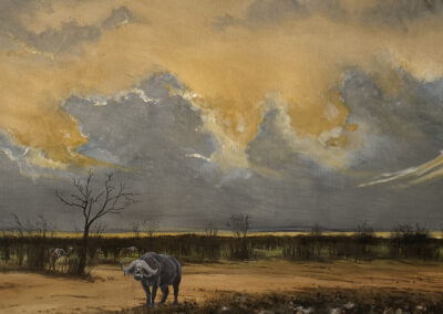 Kruger Buffalo in burnt Mopani Landscape